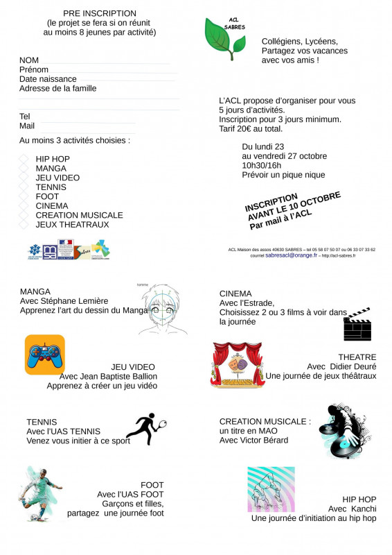 Une offre d'activités pour les vacances pour les jeunes... réponse avant le 10 octobre