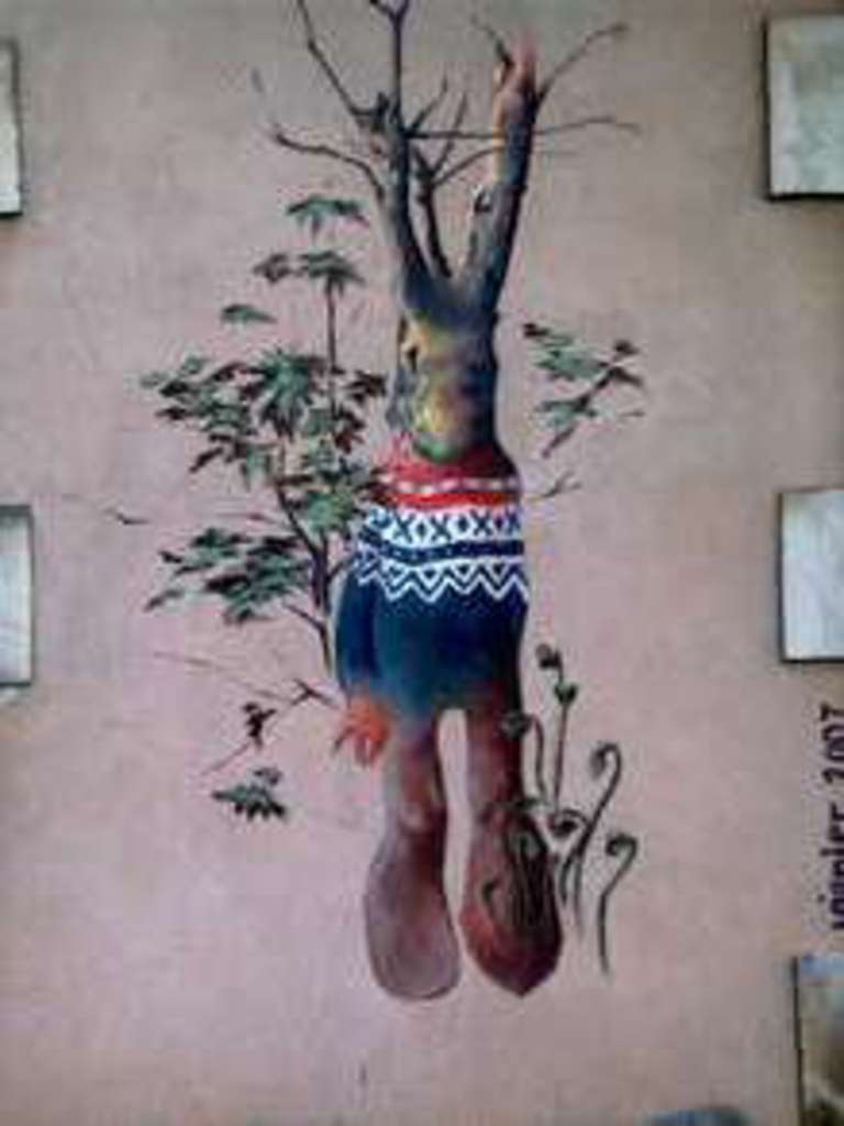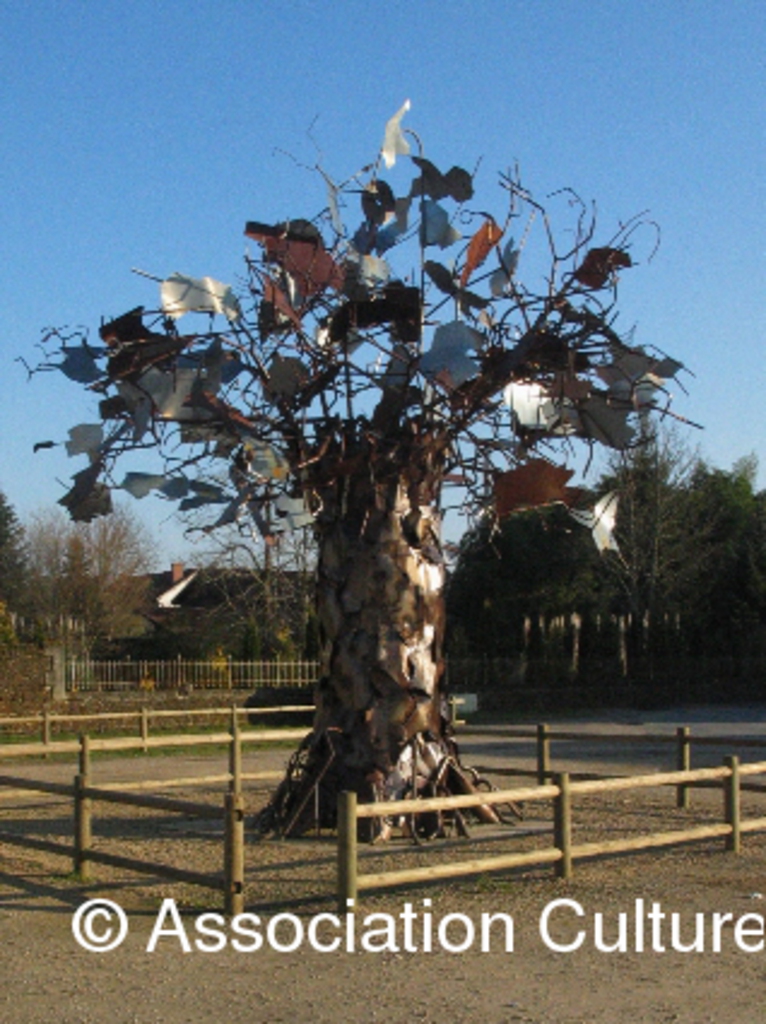 différents plasticiens ont été invités à proposer pour le village un oeuvre "arbre"