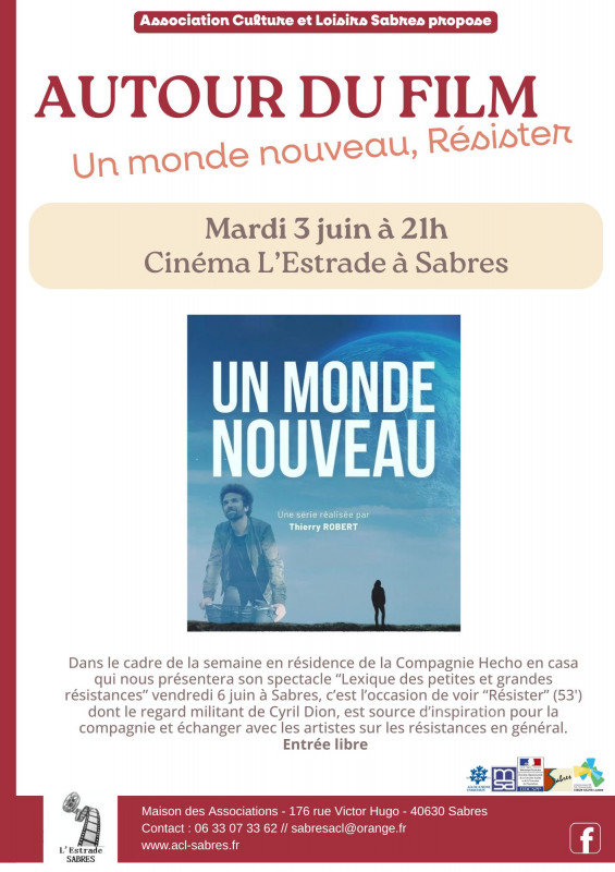 Pour cela, elle est gestionnaire du cinéma L'Estrade en délégation de service pour la Mairie de Sabres et propose une palette d'activités de loisirs : les Clubs (yoga, pilates, oenologie, danse, badminton...) et l'échange des savoirs.